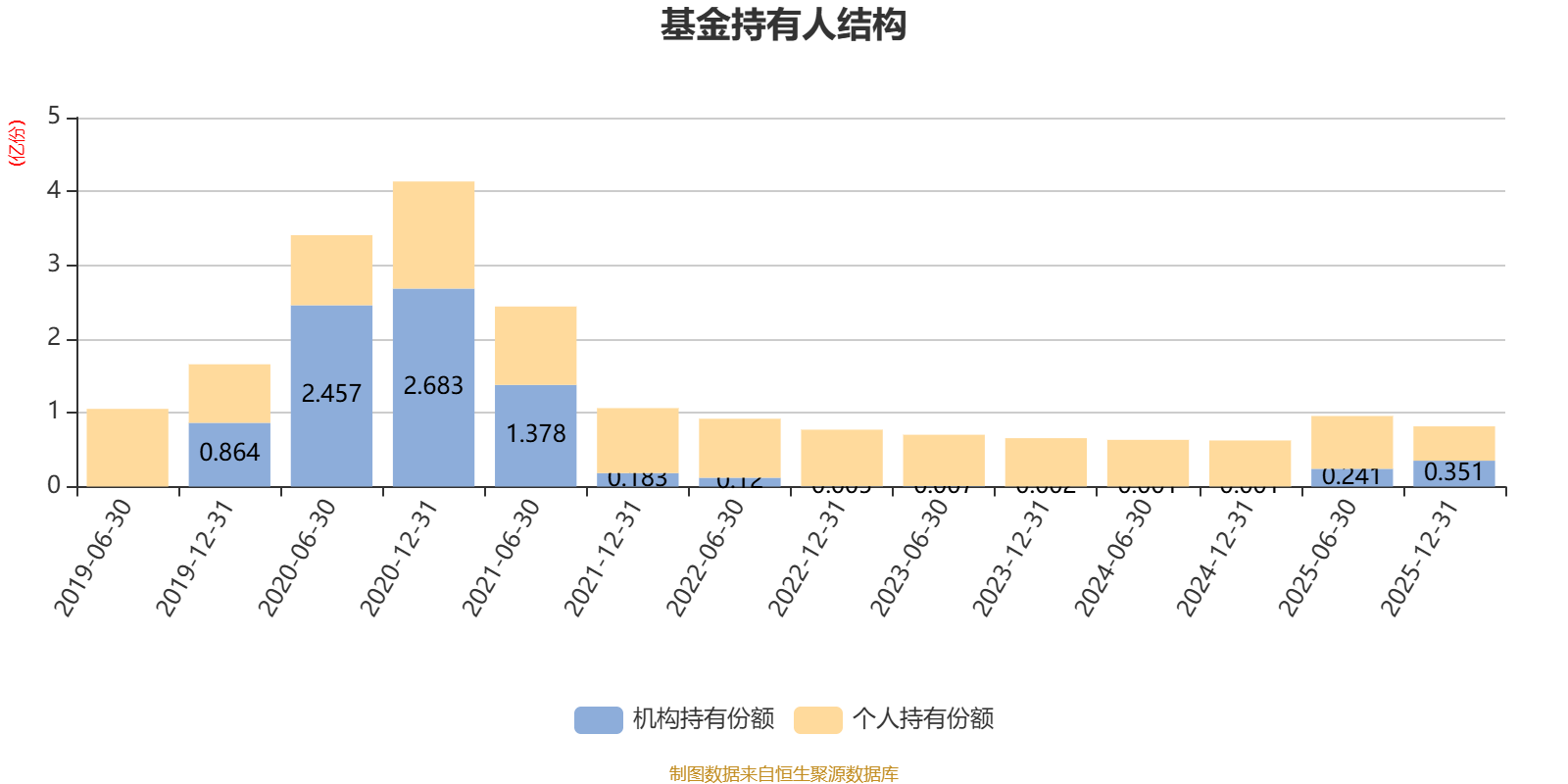 截至2025年12月31日,基金持有人共计3927户,合计持有8163.98万份。其中管理人员工持有124.08万份,占比1.52%,机构持有份额占比43.04%,个人投资者占比56.96%。