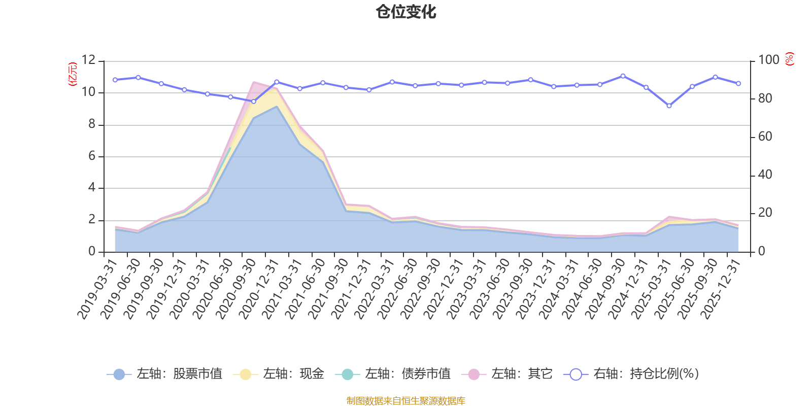 据定期报告数据统计,近三年平均股票仓位为87.49%,同类平均为85.83%。2024年三季度末基金达到92.09%的最高仓位,2025年一季度末最低,为76.53%。