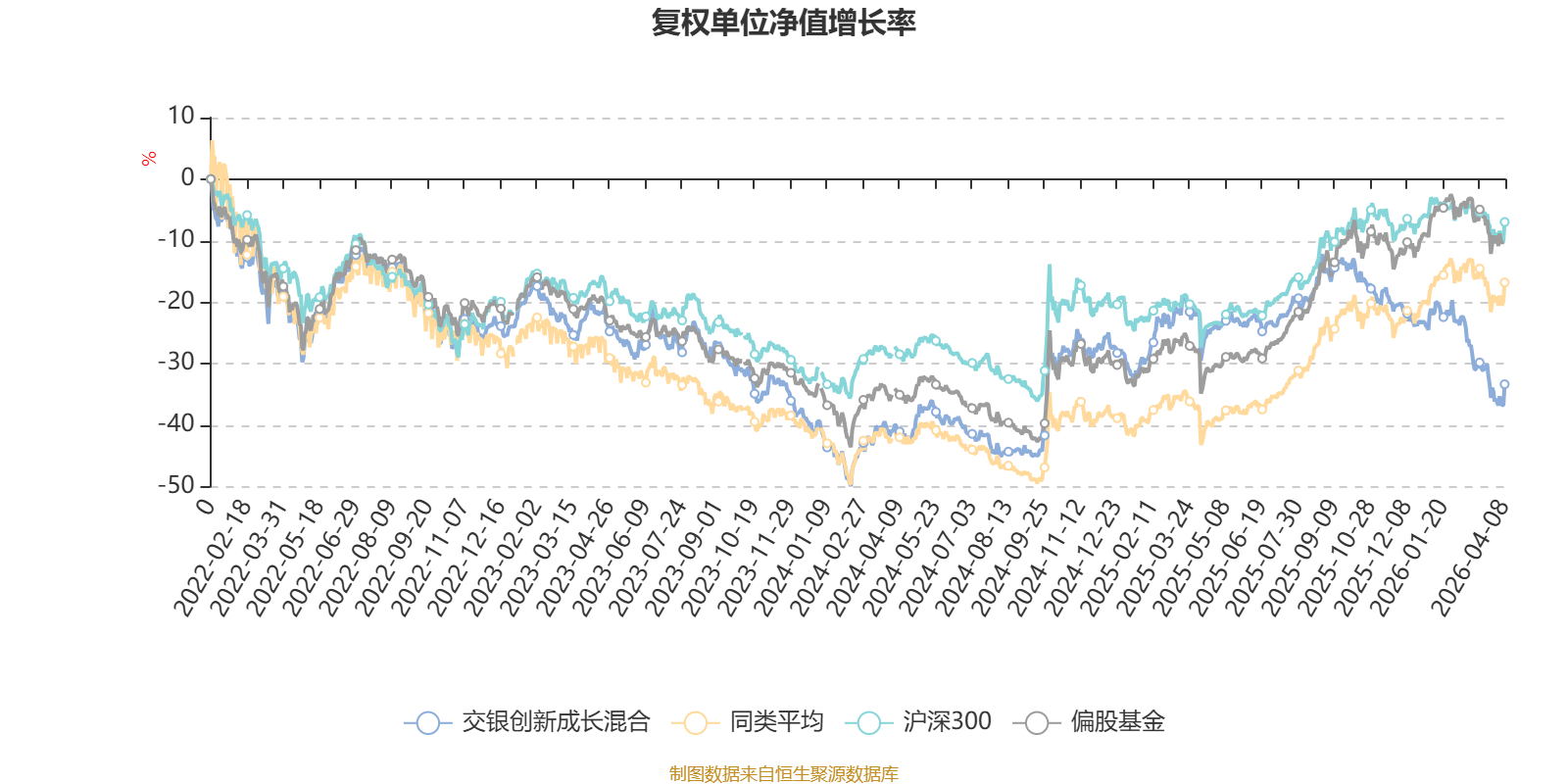 截至4月8日,交银创新成长混合近三个月复权单位净值增长率为-14.59%,位于同类可比基金615/621;近半年复权单位净值增长率为-23.49%,位于同类可比基金619/621;近一年复权单位净值增长率为-7.20%,位于同类可比基金615/618;近三年复权单位净值增长率为-16.20%,位于同类可比基金522/559。