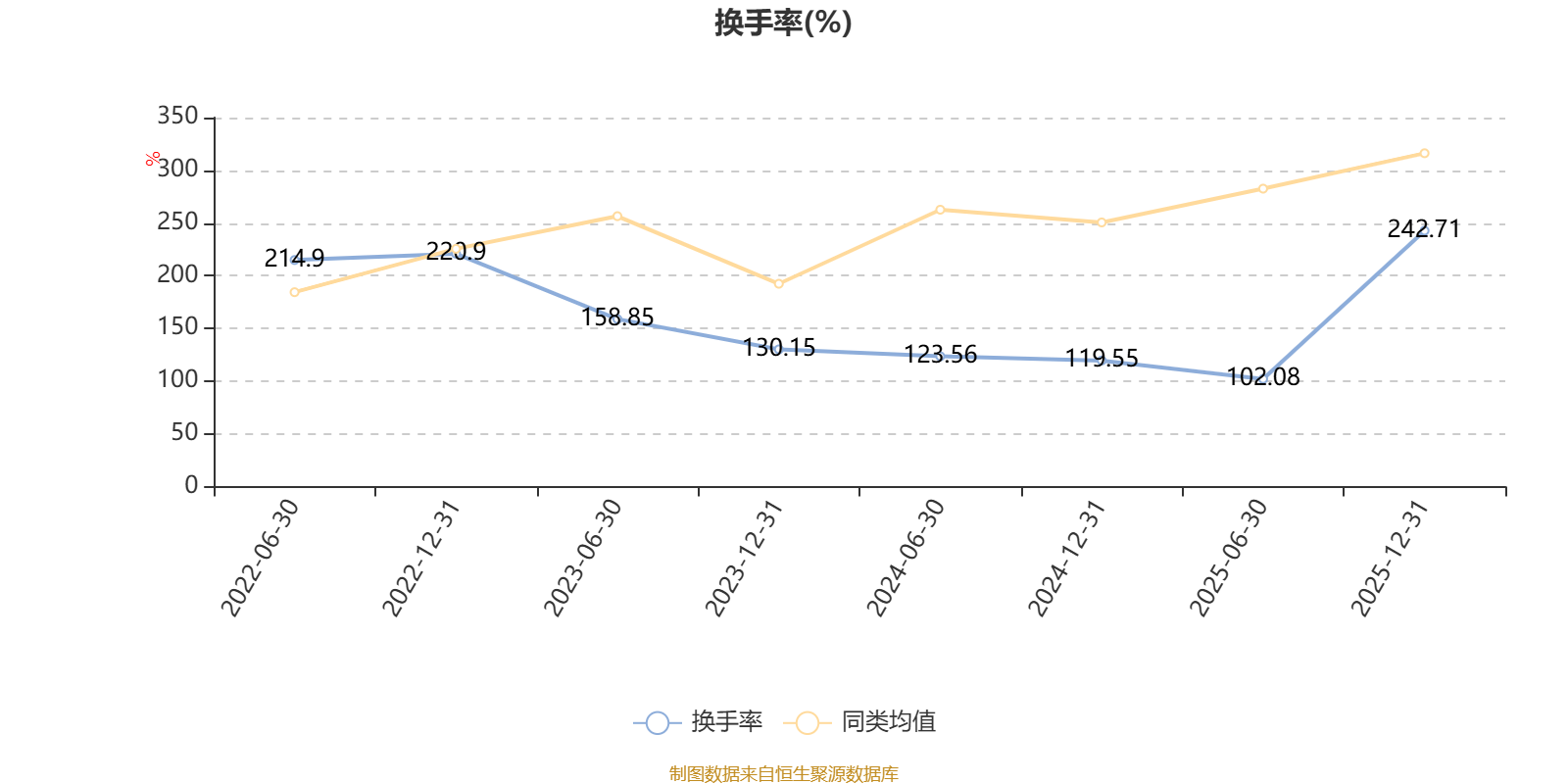 截至2025年12月31日,基金最近一年换手率约326.43%,持续3年低于同类均值。