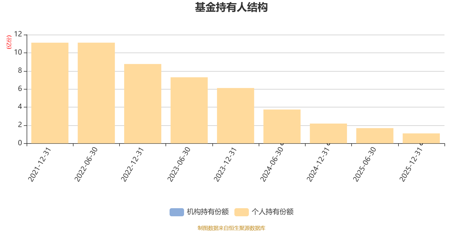截至2025年12月31日,基金持有人共计1165户,合计持有1.1亿份。其中管理人员工持有44.63份,机构持有份额占比0.00%,个人投资者占比100.00%。