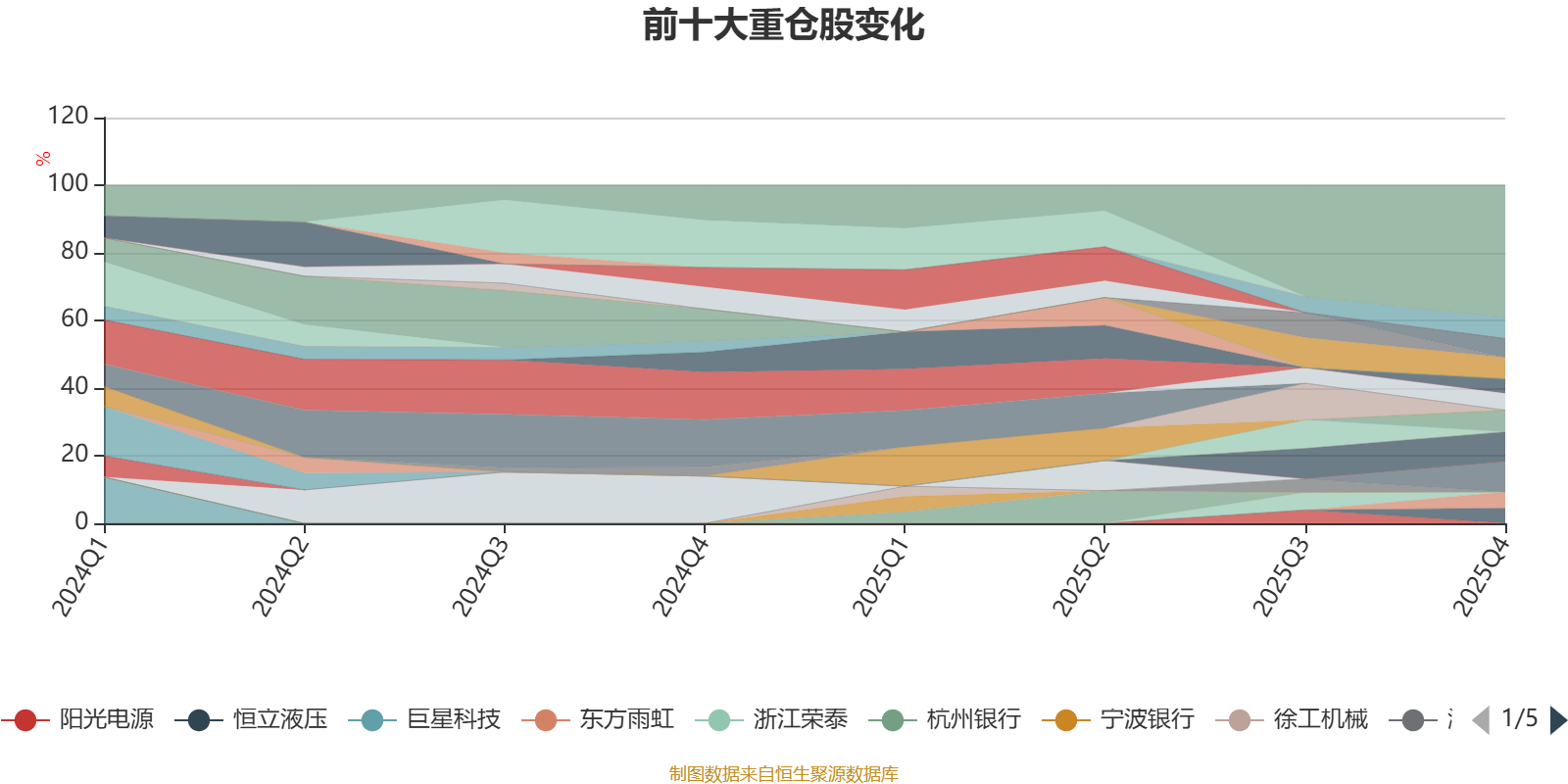 该基金持股集中度较高,近2年前十大重仓股集中度长期超过60%。截至2025年末,基金十大重仓股分别是德业股份、宁德时代、思源电气、北方华创、紫金矿业、中际旭创、新易盛、东方雨虹、恒立液压、伊利股份。