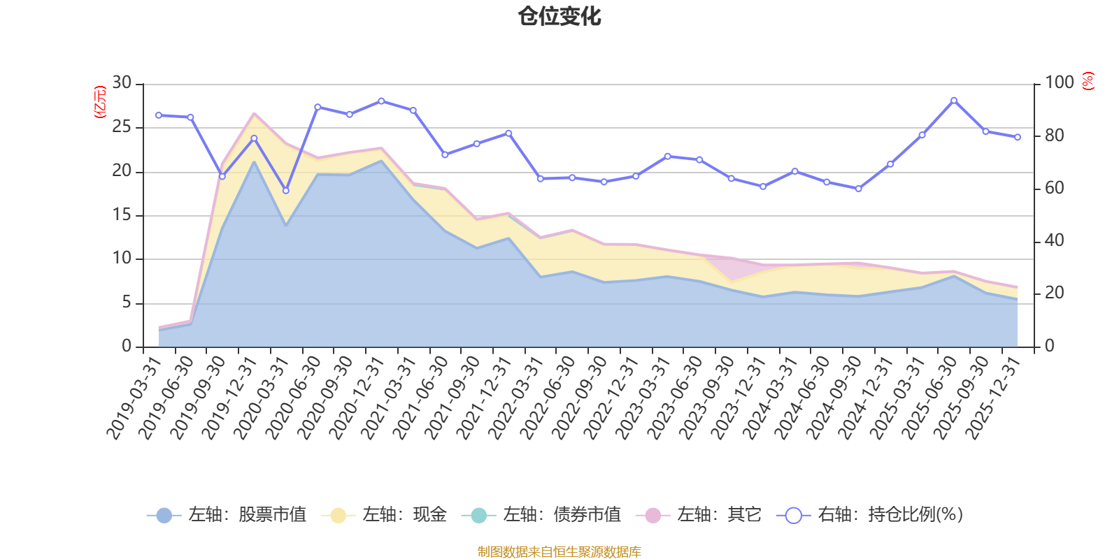 据定期报告数据统计,近三年平均股票仓位为71.97%,同类平均为86.12%。2025年上半年末基金达到93.7%的最高仓位,2020年一季度末最低,为59.41%。