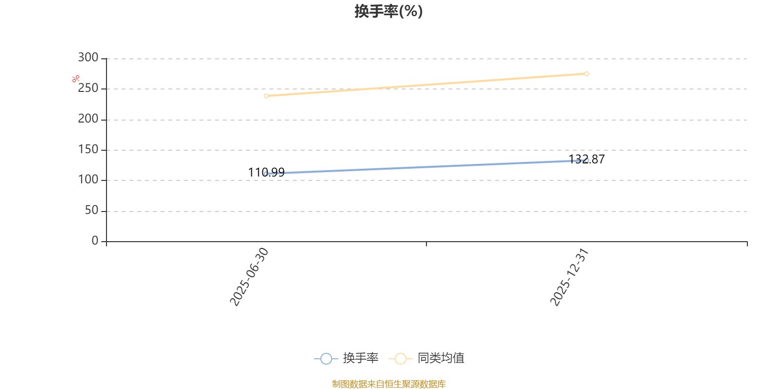 截至2025年12月31日,基金最近一年换手率约266.88%,持续低于同类均值。