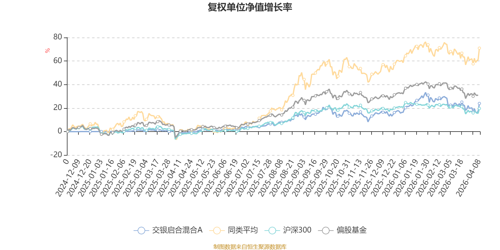 截至4月8日,交银启合混合A近三个月复权单位净值增长率为2.15%,位于同类可比基金111/229;近半年复权单位净值增长率为2.29%,位于同类可比基金128/229;近一年复权单位净值增长率为28.97%,位于同类可比基金207/229。