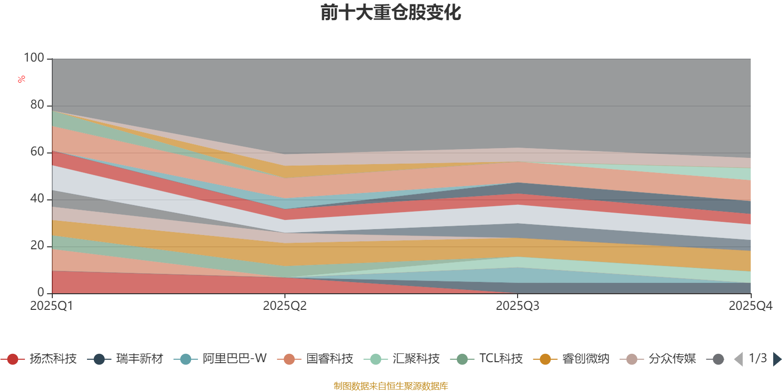 该基金持股集中度较高。截至2025年末,基金十大重仓股分别是北方华创、睿创微纳、腾讯控股、汇顶科技、中际旭创、汇聚科技、歌尔股份、高伟电子、瑞丰新材、润丰股份。
