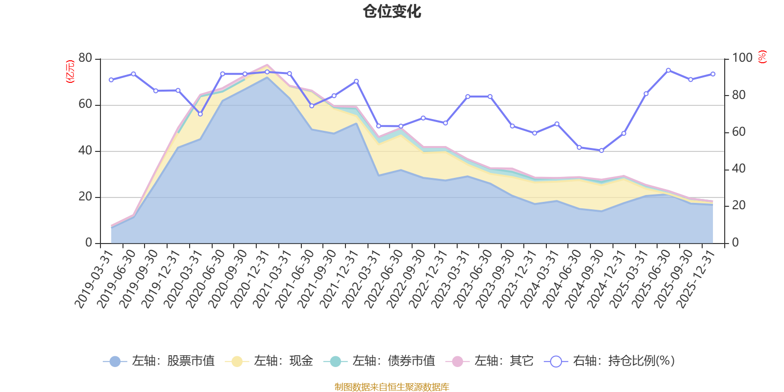 据定期报告数据统计,近三年平均股票仓位为72.03%,同类平均为67.52%。2025年上半年末基金达到93.77%的最高仓位,2024年三季度末最低,为50.31%。