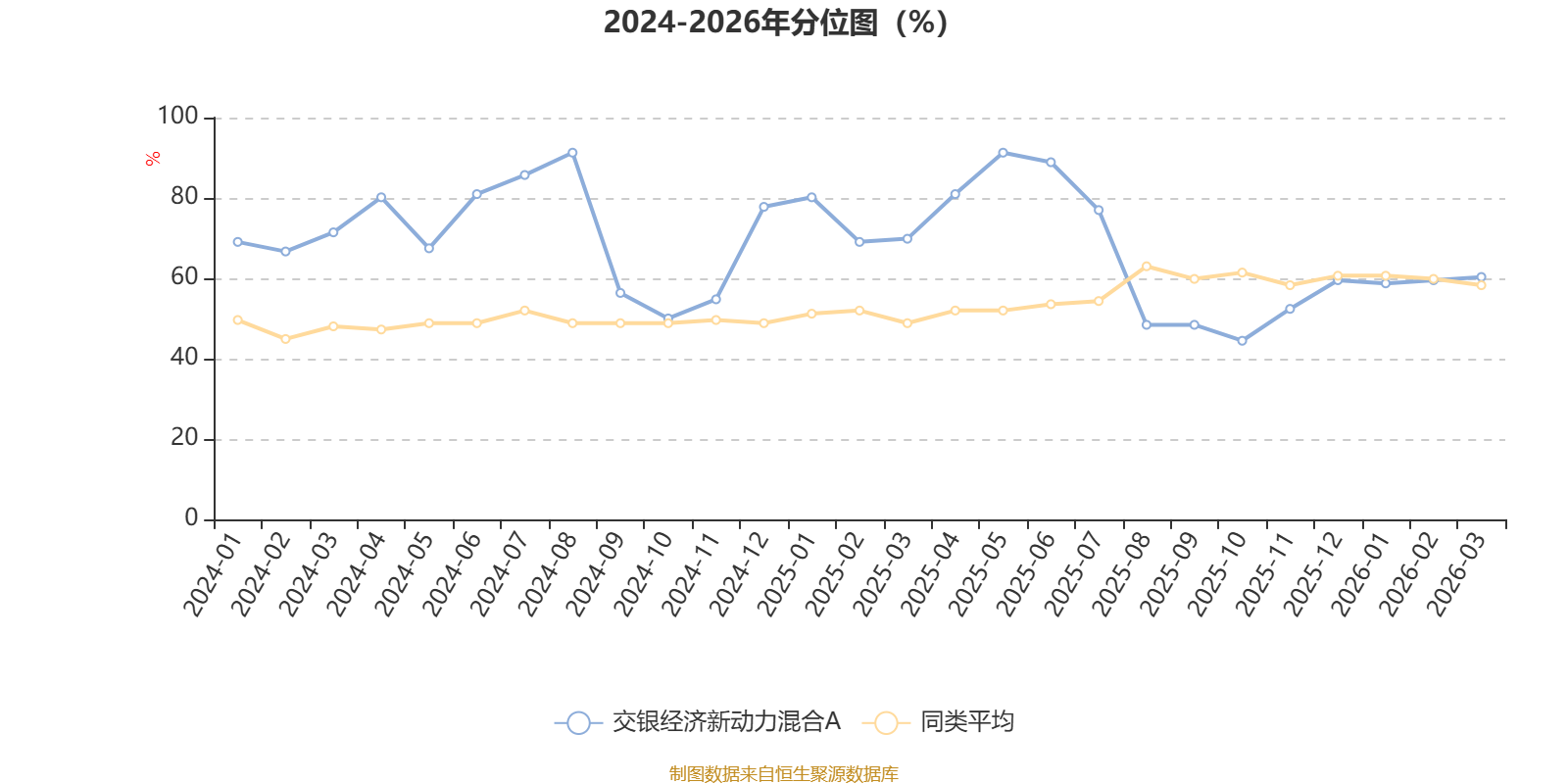 通过所选区间该基金净值增长率分位图,可以观察该基金与同类基金业绩比较情况。图为坐标原点到区间内某时点的净值增长率在同类基金中的分位数。