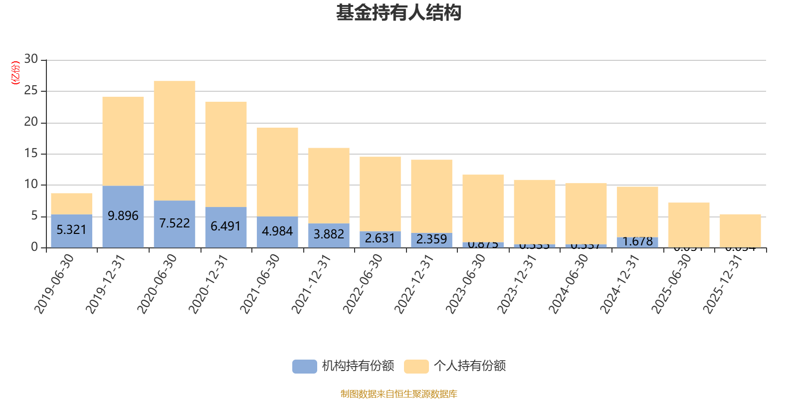 截至2025年12月31日,基金持有人共计8.28万户,合计持有5.32亿份。其中管理人员工持有31.49万份,占比0.06%,机构持有份额占比0.64%,个人投资者占比99.36%。
