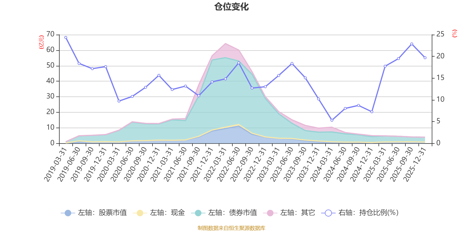 据定期报告数据统计,近三年平均股票仓位为14.04%,同类平均为72.57%。2019年一季度末基金达到24.36%的最高仓位,2024年一季度末最低,为5.32%。