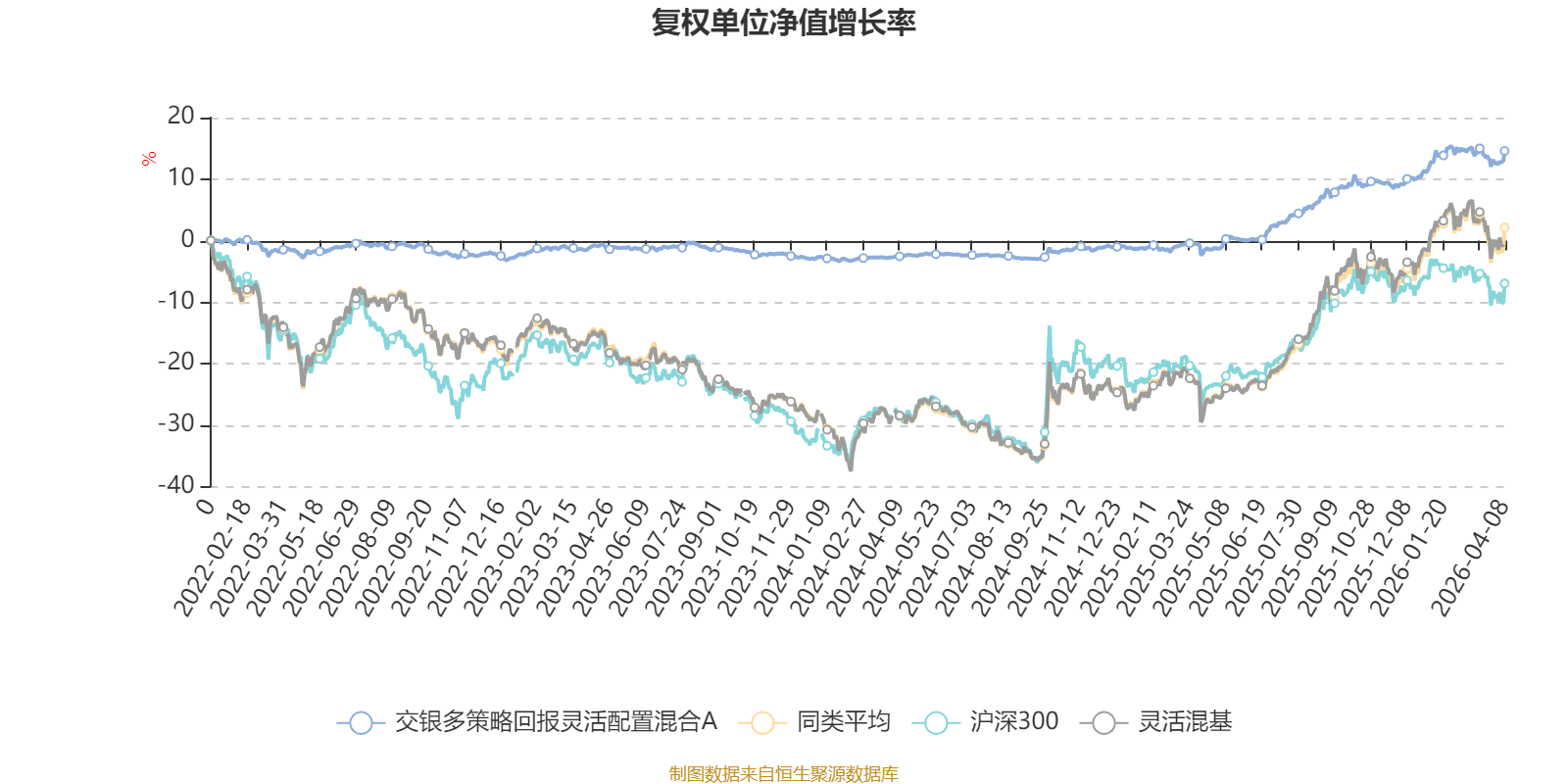截至4月8日,交银多策略回报灵活配置混合A近三个月复权单位净值增长率为1.63%,位于同类可比基金445/1287;近半年复权单位净值增长率为4.22%,位于同类可比基金541/1286;近一年复权单位净值增长率为17.21%,位于同类可比基金946/1286;近三年复权单位净值增长率为15.52%,位于同类可比基金593/1286。