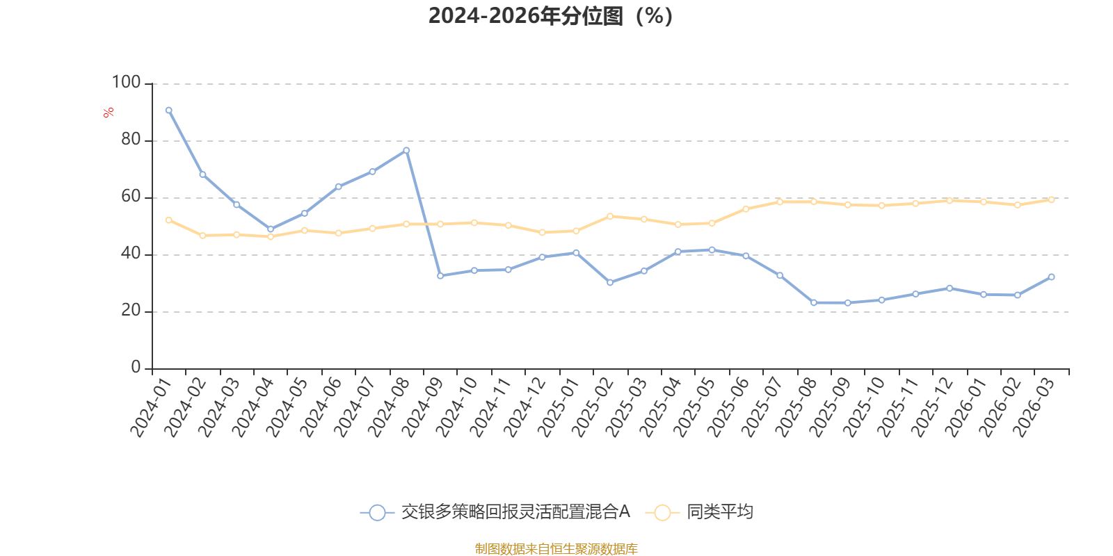通过所选区间该基金净值增长率分位图,可以观察该基金与同类基金业绩比较情况。图为坐标原点到区间内某时点的净值增长率在同类基金中的分位数。