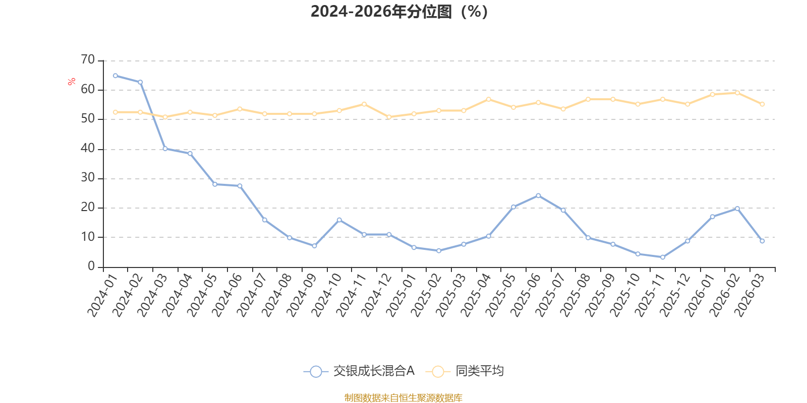 通过所选区间该基金净值增长率分位图,可以观察该基金与同类基金业绩比较情况。图为坐标原点到区间内某时点的净值增长率在同类基金中的分位数。