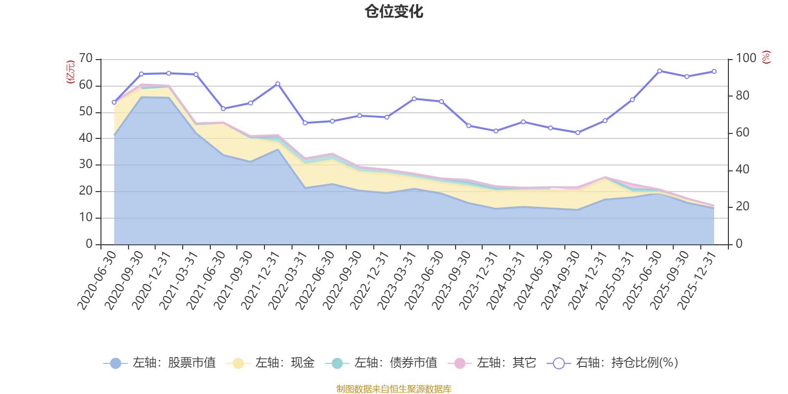 据定期报告数据统计,近三年平均股票仓位为74.42%,同类平均为86.17%。2025年上半年末基金达到93.61%的最高仓位,2024年三季度末最低,为60.38%。