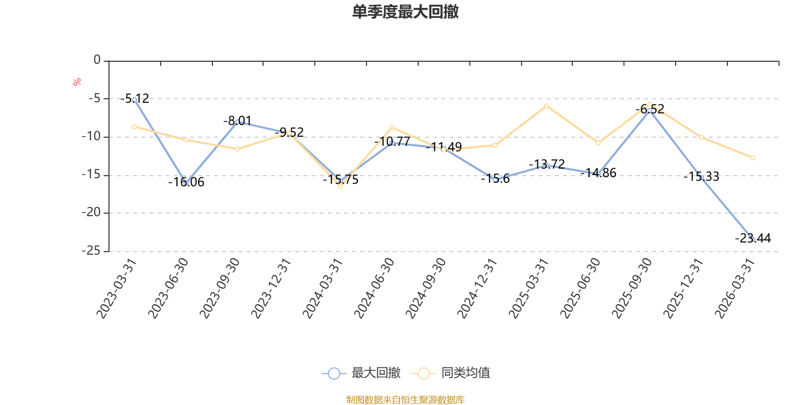 截至4月8日,基金近三年最大回撤为32.59%,同类可比基金排名111/226。单季度最大回撤出现在2026年一季度,为23.44%。