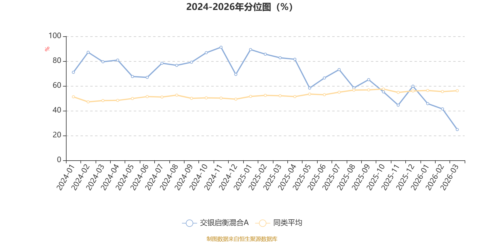 通过所选区间该基金净值增长率分位图,可以观察该基金与同类基金业绩比较情况。图为坐标原点到区间内某时点的净值增长率在同类基金中的分位数。