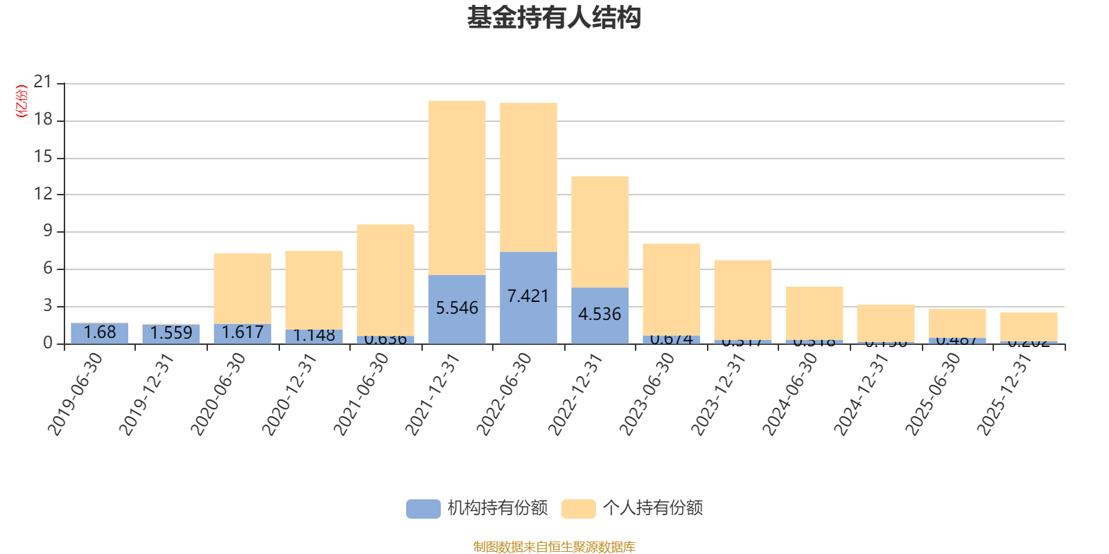 截至2025年12月31日,基金持有人共计12.33万户,合计持有2.53亿份。其中管理人员工持有7.37万份,占比0.03%,机构持有份额占比8.00%,个人投资者占比92.00%。