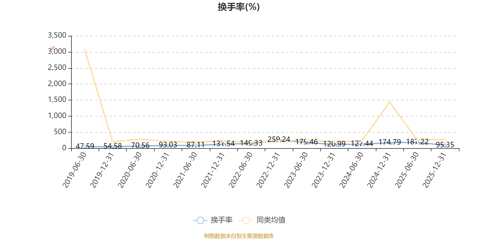 截至2025年12月31日,基金最近一年换手率约279.36%,持续3年低于同类均值。
