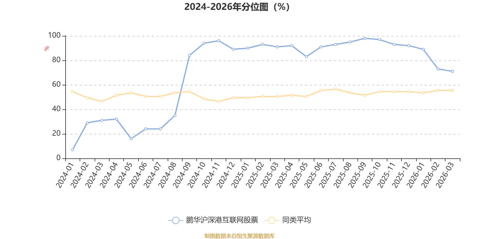 通过所选区间该基金净值增长率分位图,可以观察该基金与同类基金业绩比较情况。图为坐标原点到区间内某时点的净值增长率在同类基金中的分位数。