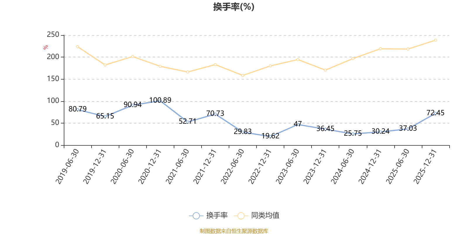 截至2025年12月31日,基金最近一年换手率约108.9%,持续低于同类均值。