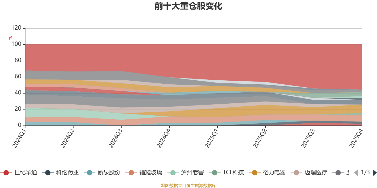截至2025年末,基金十大重仓股分别是格力电器、福耀玻璃、海大集团、山金国际、贵州茅台、TCL科技、科伦药业、史丹利、世纪华通、长江电力。