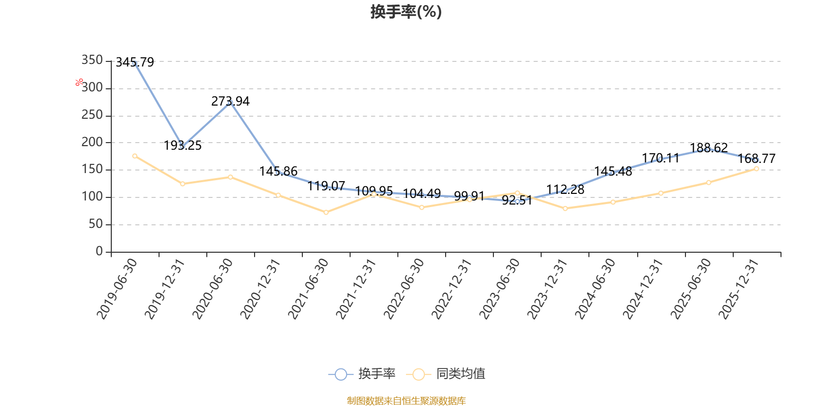 截至2025年12月31日,基金最近一年换手率约352.97%,持续2年高于同类均值。