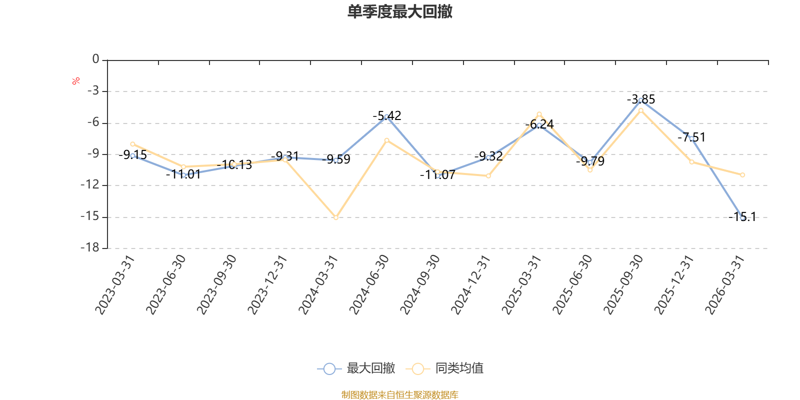 截至4月8日,基金近三年最大回撤为23.38%,同类可比基金排名15/57。单季度最大回撤出现在2026年一季度,为15.1%。