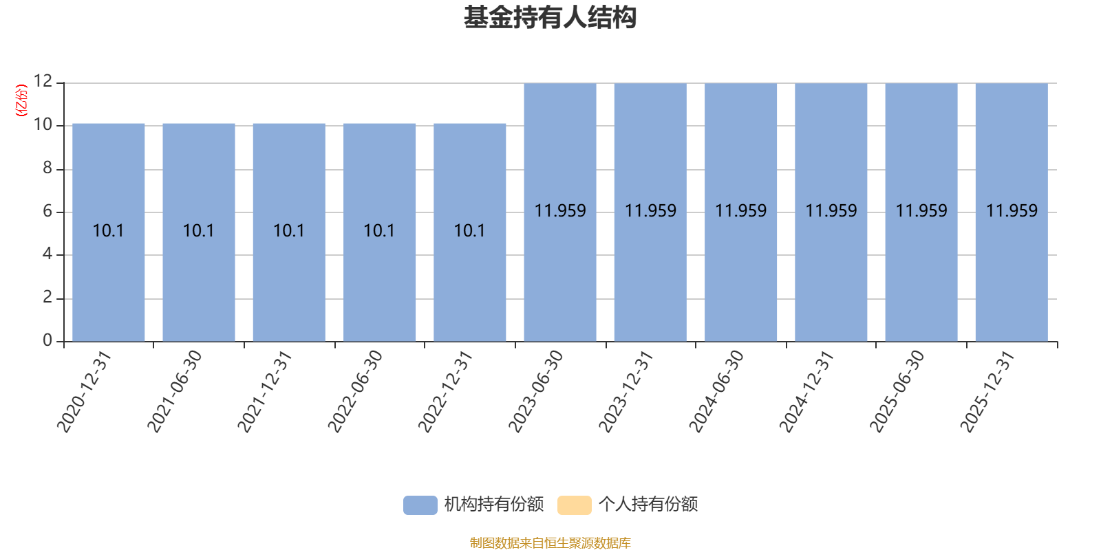 截至2025年12月31日,基金持有人共计213户,合计持有11.96亿份。其中管理人员工持有0份,机构持有份额占比100.00%,