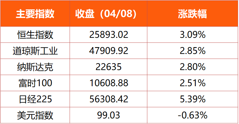 美股市场:截止4月8日收盘,美股三大指数全线上涨。消息面上,美国白宫新闻秘书莱维特8日在记者会上宣布,美国和伊朗将于当地时间11日上午在巴基斯坦首都伊斯兰堡举行首轮会谈。她还称美方接受的是伊朗经过修改后的新方案,而非最初提出的10点建议。