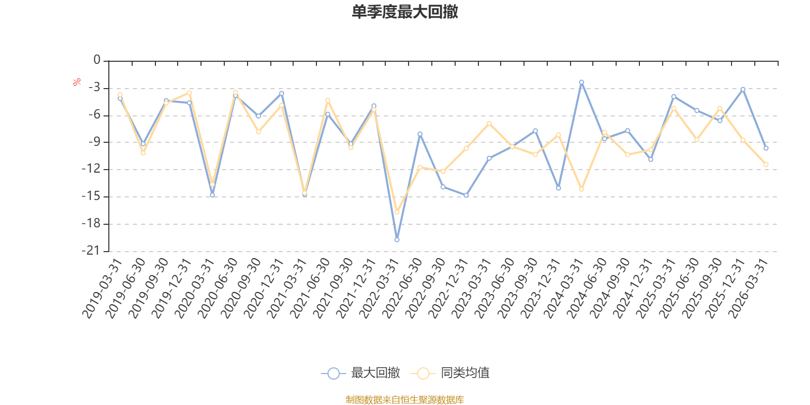 截至4月8日,基金近三年最大回撤为18.79%,同类可比基金排名260/1264。单季度最大回撤出现在2022年一季度,为19.72%。