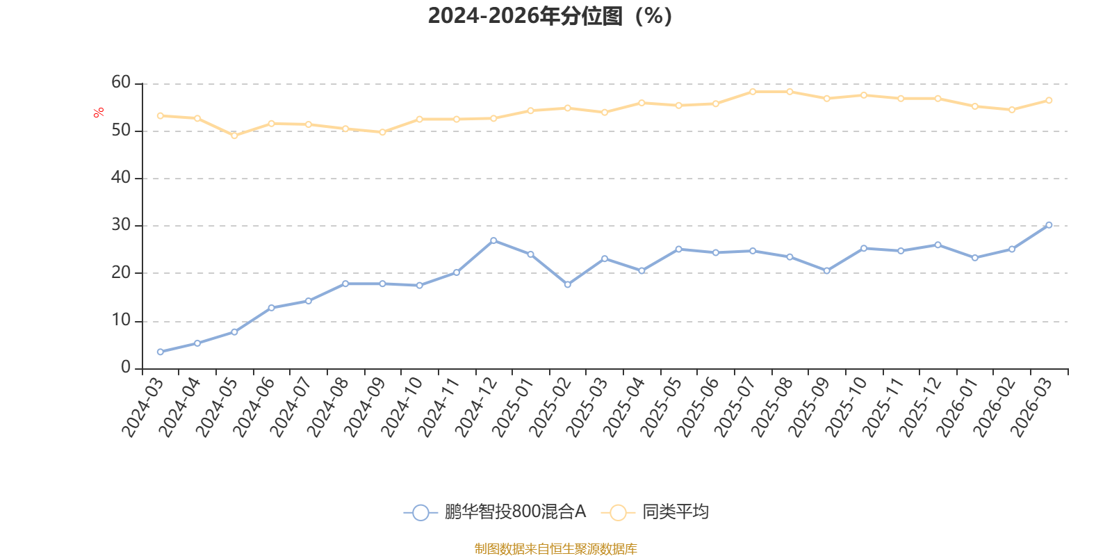 通过所选区间该基金净值增长率分位图,可以观察该基金与同类基金业绩比较情况。图为坐标原点到区间内某时点的净值增长率在同类基金中的分位数。