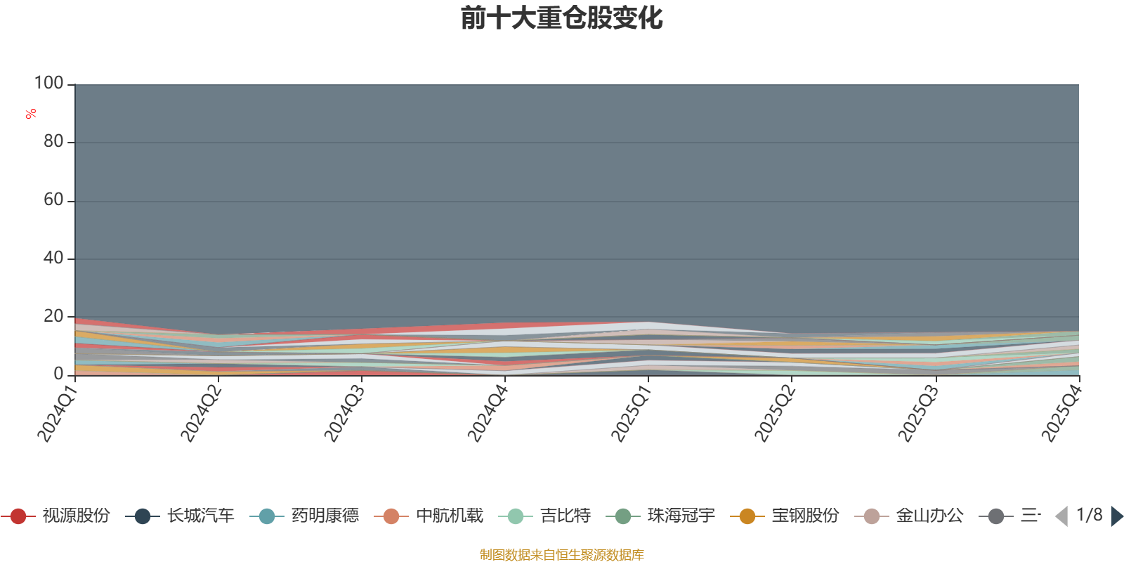 截至2025年末,基金十大重仓股分别是药明康德、宁德时代、海康威视、蓝思科技、宁波银行、新华保险、珠海冠宇、伊利股份、华能国际、中国平安。