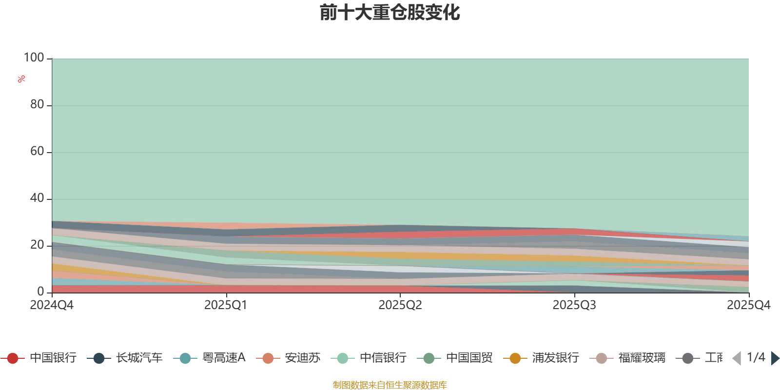 截至2025年末,基金十大重仓股分别是中国电信、宝丰能源、中国移动、中国联通、福耀玻璃、科汇股份、中国国贸、兴业银行、永兴股份、小商品城。