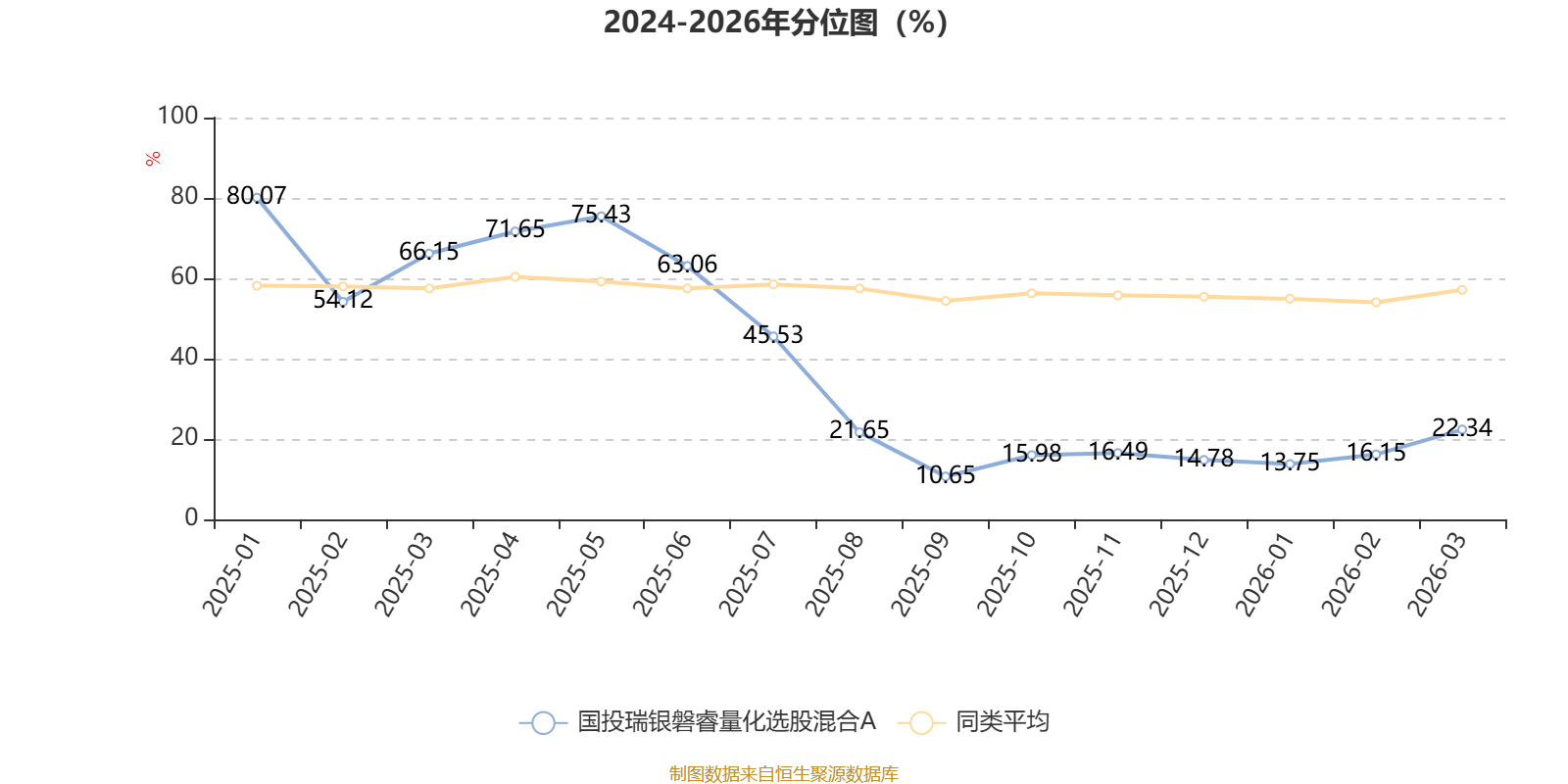 通过所选区间该基金净值增长率分位图,可以观察该基金与同类基金业绩比较情况。图为坐标原点到区间内某时点的净值增长率在同类基金中的分位数。