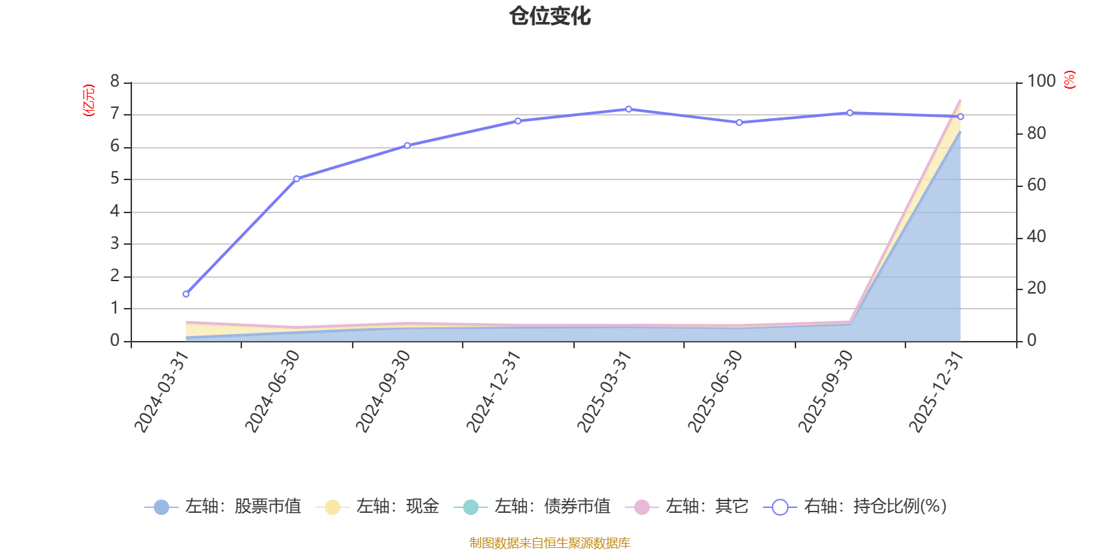 据定期报告数据统计,成立以来平均股票仓位为73.91%,同类平均为84.04%。2025年一季度末基金达到89.72%的最高仓位,2024年一季度末最低,为18.28%。