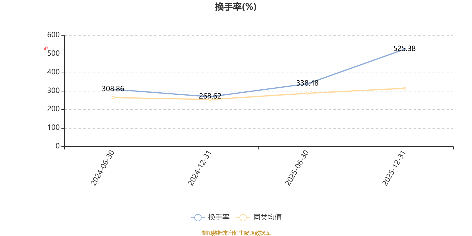 截至2025年12月31日,基金最近一年换手率约871.52%,持续高于同类均值。