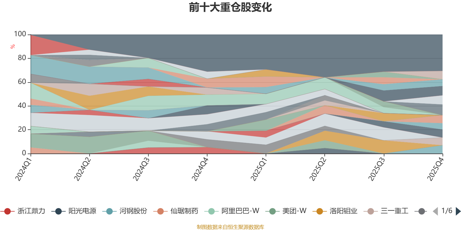 该基金持股集中度较高,近2年前十大重仓股集中度长期超过60%。截至2025年末,基金十大重仓股分别是宝丰能源、亨通光电、中信博、海尔智家、河钢股份、赛轮轮胎、中国平安、三一重工、宝武镁业、潍柴动力。