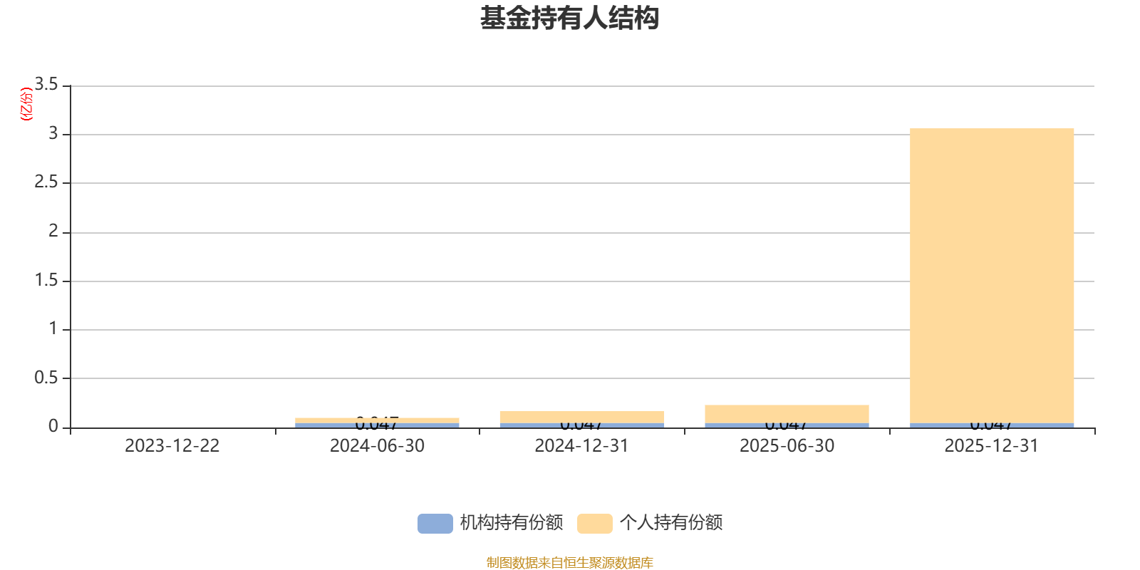 截至2025年12月31日,基金持有人共计1427户,合计持有3.06亿份。其中管理人员工持有168.73万份,占比0.55%,机构持有份额占比1.54%,个人投资者占比98.46%。