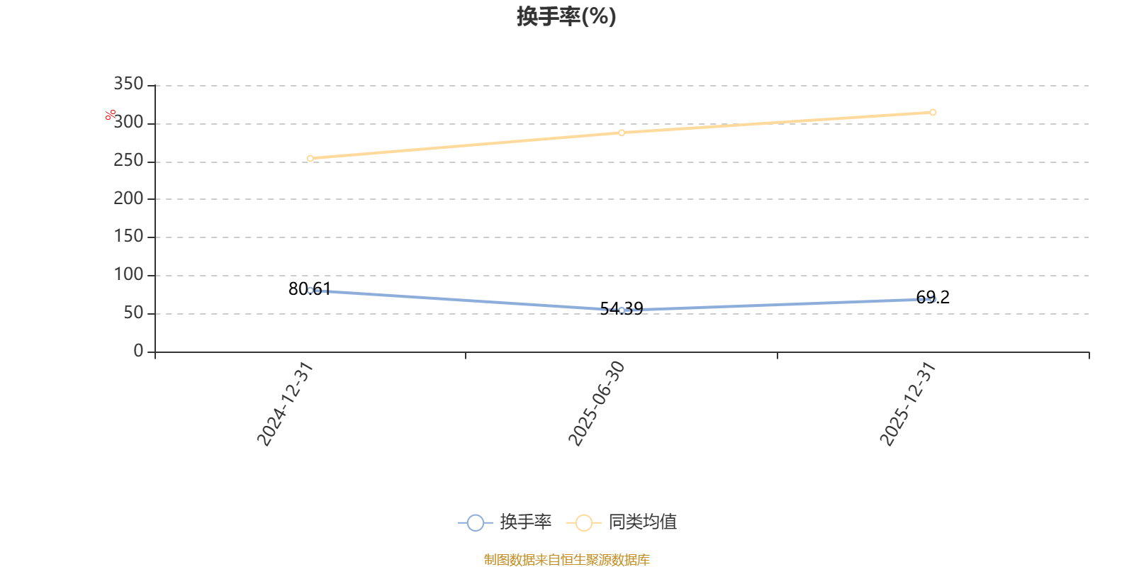 截至2025年12月31日,基金最近一年换手率约119.87%,持续低于同类均值。