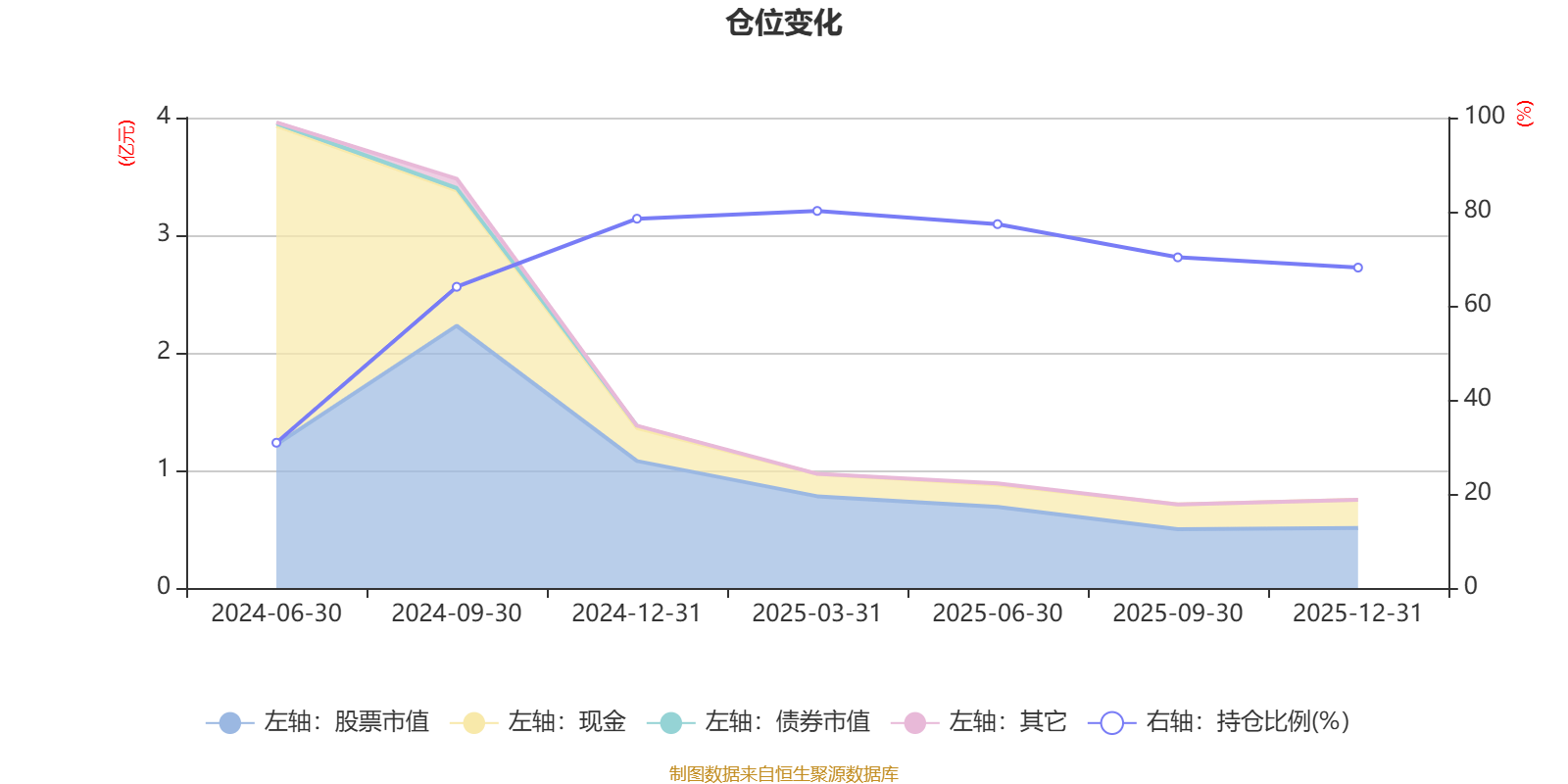 基金管理人在年报中表示,2025 年,权益市场虽有波折,但总体重心上移,赚钱效应不错。风格方面则较为分化,科技和有色等少数几个行业超额显著,其余行业表现平淡。报告期内,本产品仓位比重变化较低,行业结构方面维持,总体上依旧延续之前的投资框架。