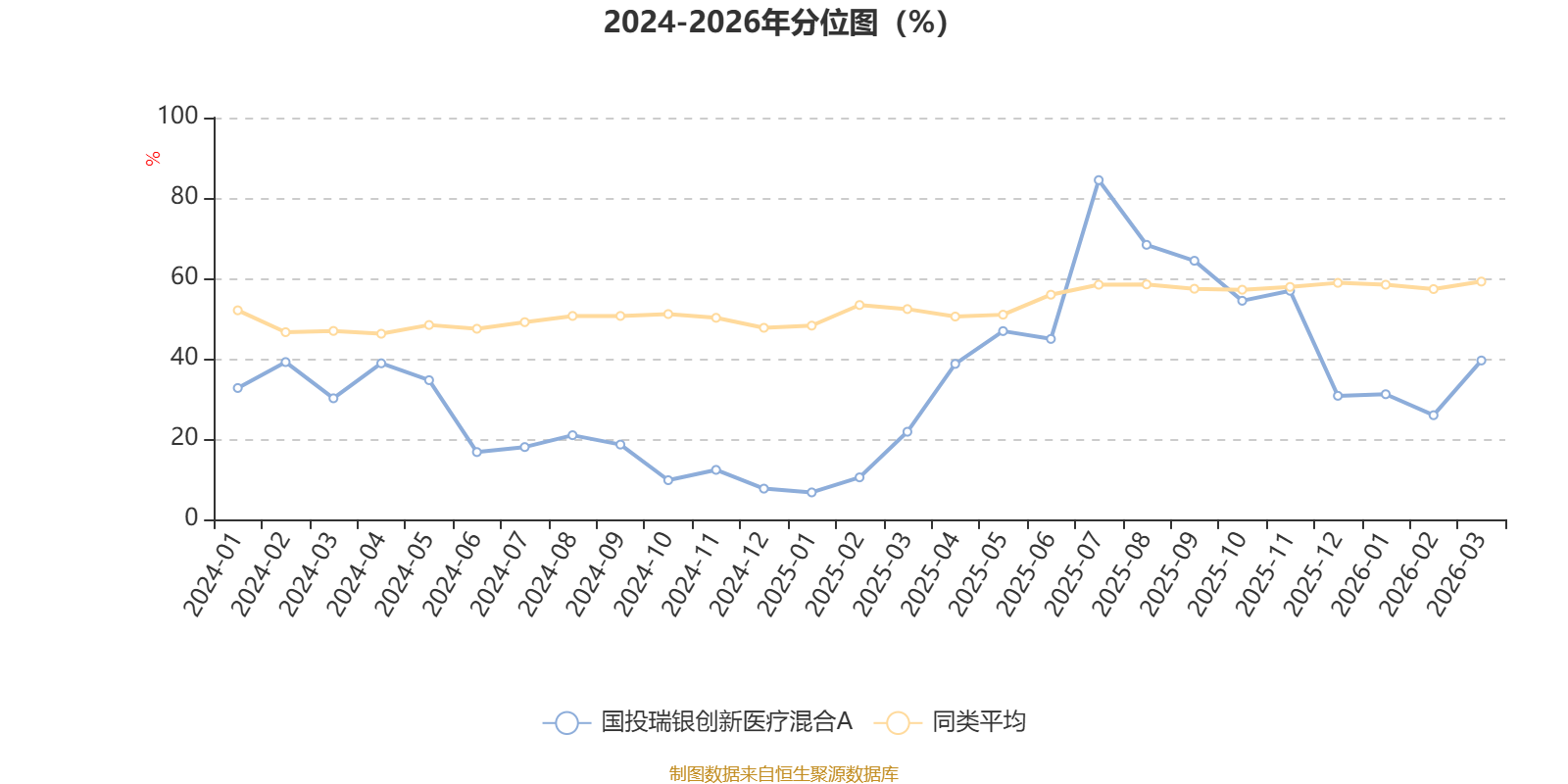 通过所选区间该基金净值增长率分位图,可以观察该基金与同类基金业绩比较情况。图为坐标原点到区间内某时点的净值增长率在同类基金中的分位数。