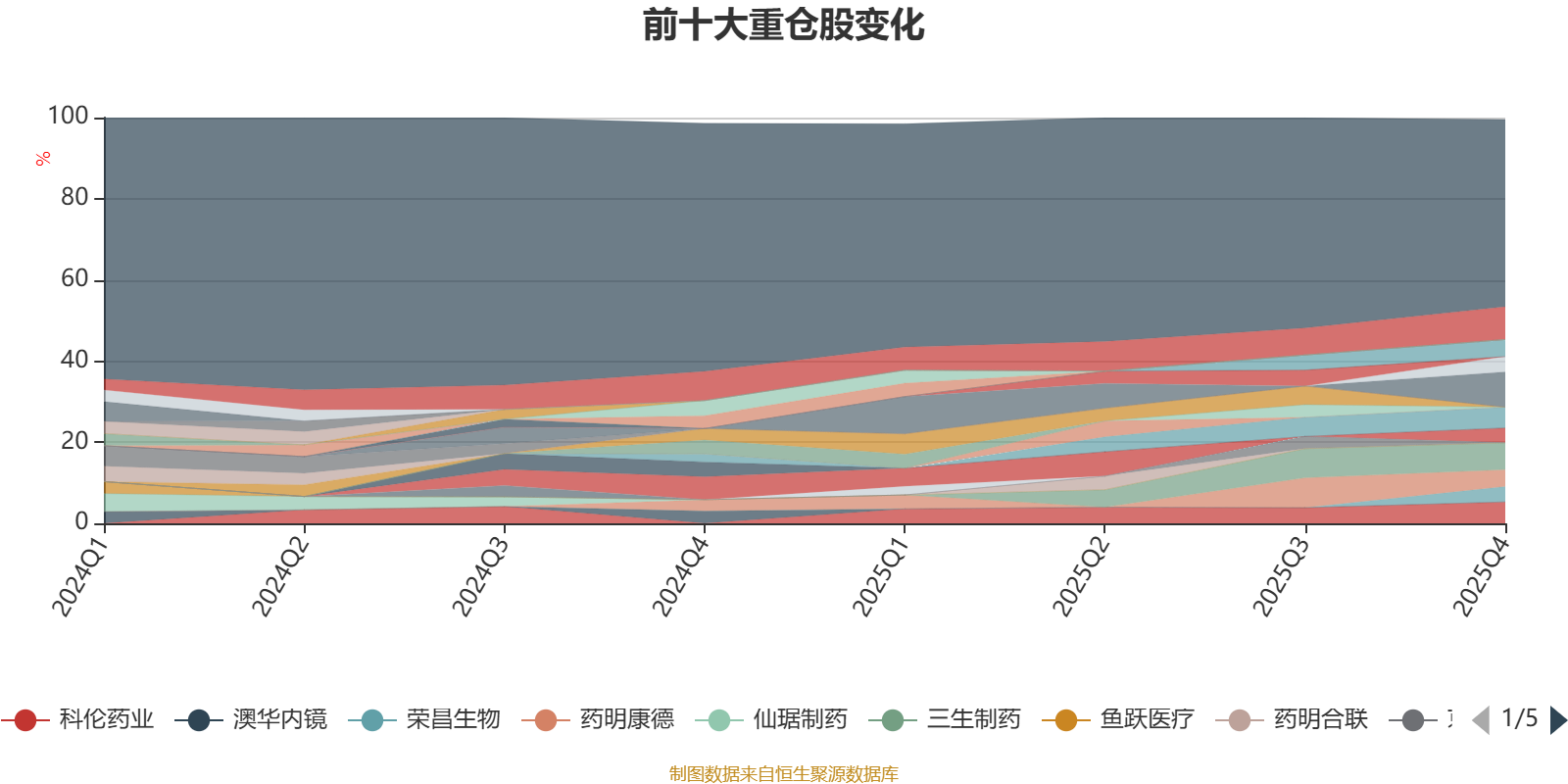 截至2025年末,基金十大重仓股分别是科伦博泰生物-B、恒瑞医药、三生制药、科伦药业、百济神州、百普赛斯、药明康德、荣昌生物、映恩生物-B、信达生物。