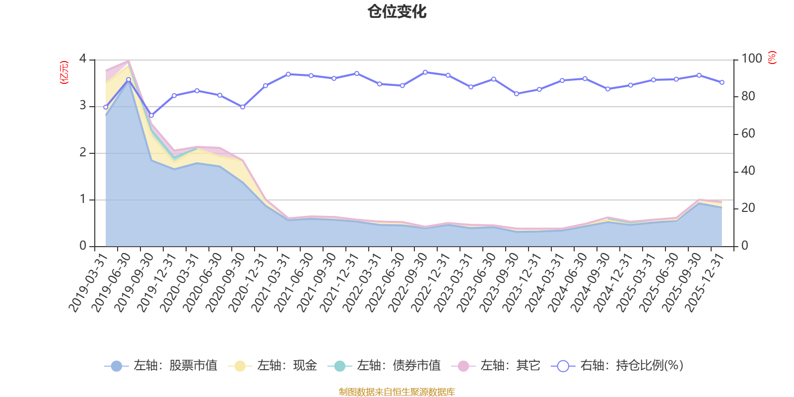 据定期报告数据统计,近三年平均股票仓位为87.31%,同类平均为72.57%。2022年三季度末基金达到93.2%的最高仓位,2019年三季度末最低,为70.1%。