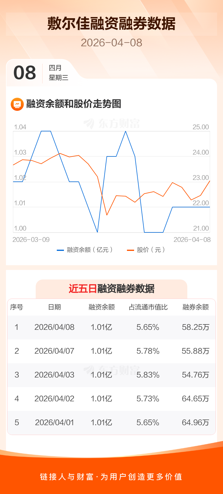 交易所最新数据显示,敷尔佳于2026年4月8日获融资买入369.70万元,融资偿还338.22万元,当日融资净买入31.48万元。目前,该股融资余额1.01亿,占流通市值比例为5.65%。