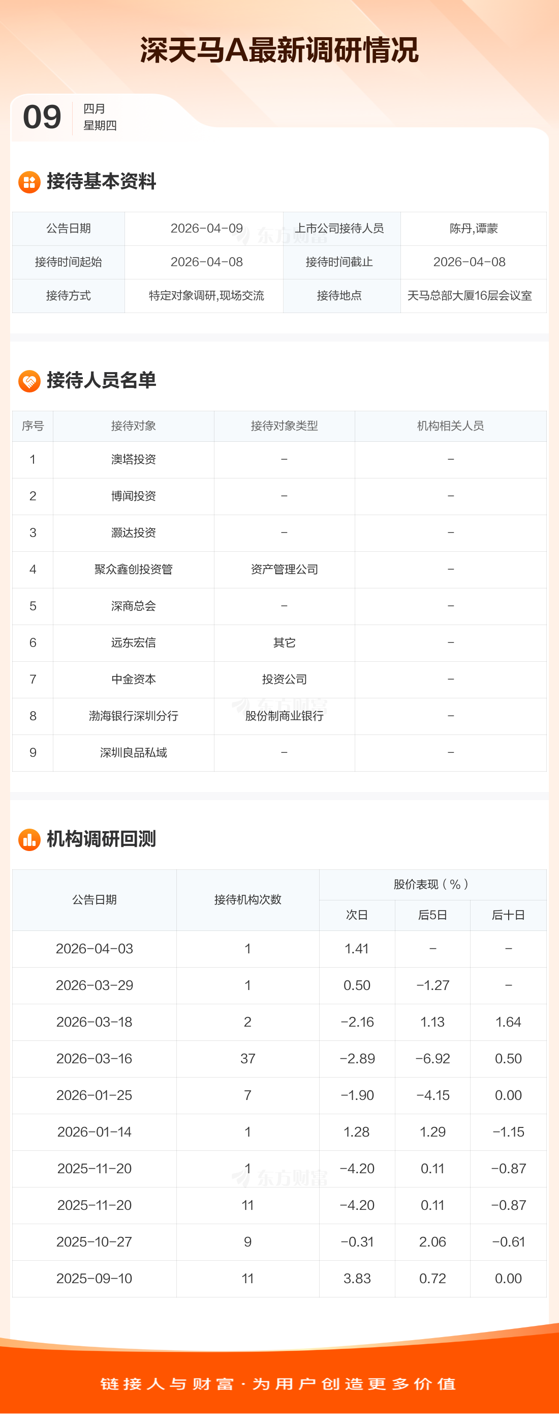 深天马A4月9日公告称,4月8日接待澳塔投资等9家机构调研。接待人员包括陈丹,谭蒙。