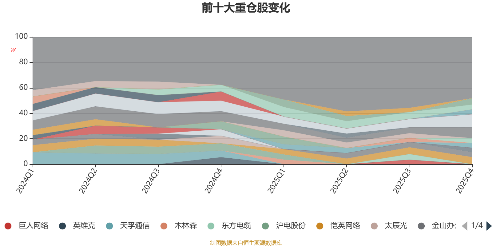 截至2025年末,基金十大重仓股分别是中际旭创、新易盛、恺英网络、恒瑞医药、大金重工、金山办公、睿创微纳、高德红外、胜宏科技、寒武纪。