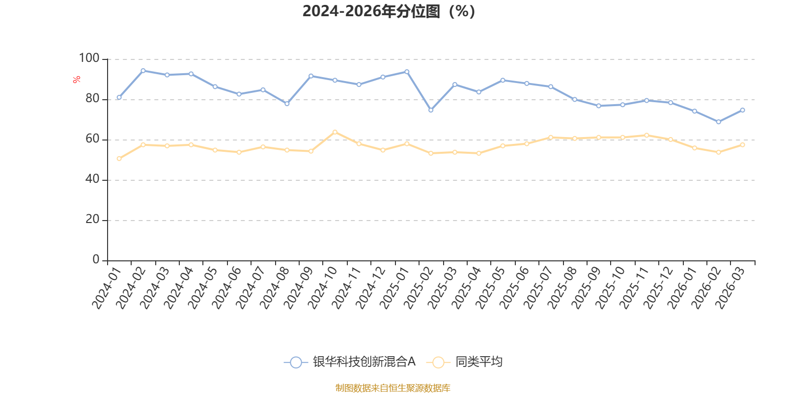 通过所选区间该基金净值增长率分位图,可以观察该基金与同类基金业绩比较情况。图为坐标原点到区间内某时点的净值增长率在同类基金中的分位数。