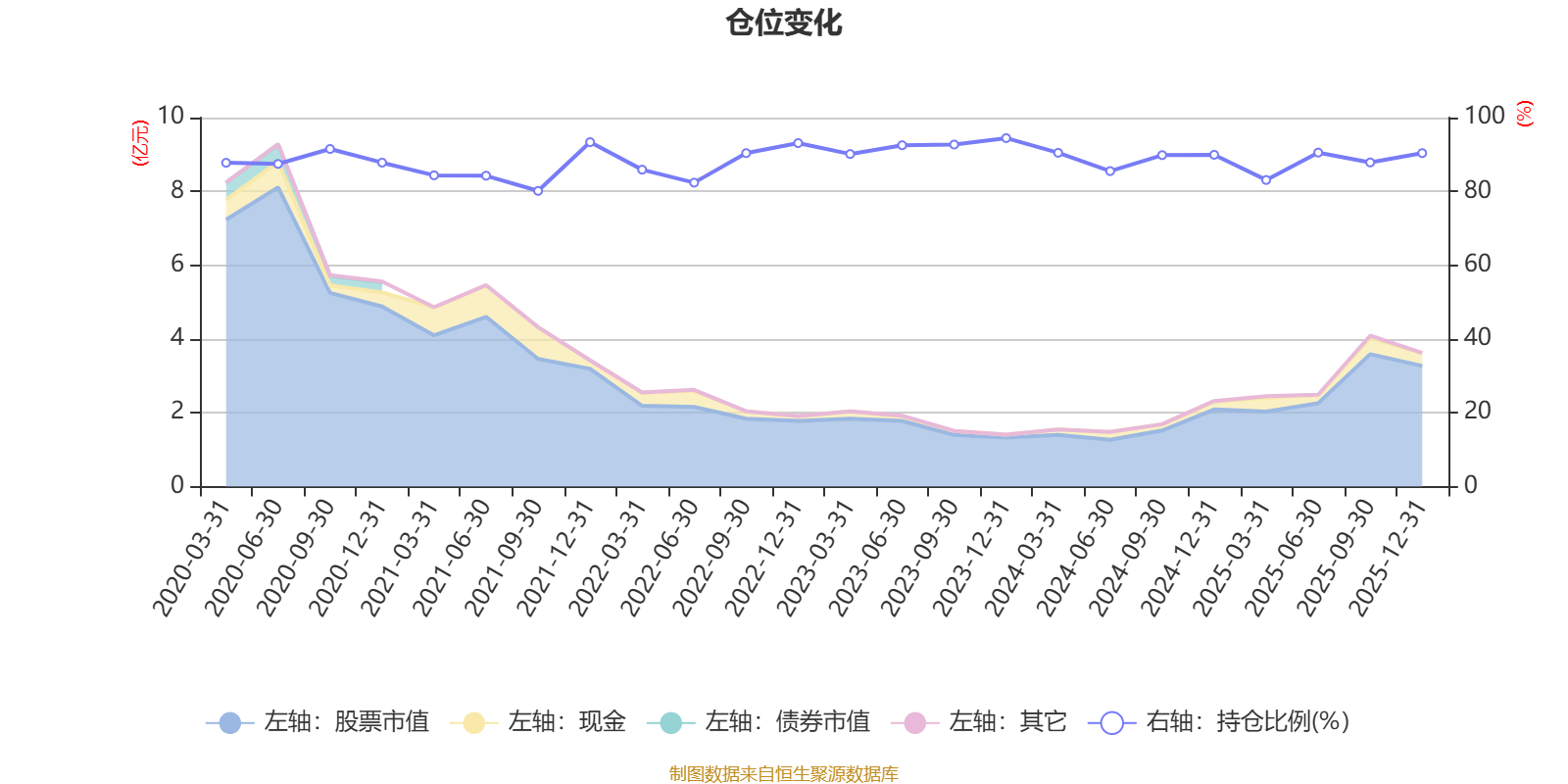 据定期报告数据统计,近三年平均股票仓位为89.78%,同类平均为86.9%。2023年末基金达到94.44%的最高仓位,2021年三季度末最低,为80.14%。