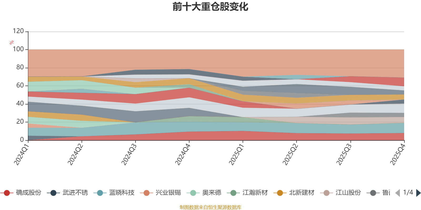 该基金持股集中度较高,近2年前十大重仓股集中度长期超过60%。截至2025年末,基金十大重仓股分别是蓝晓科技、呈和科技、利安隆、确成股份、江山股份、山金国际、赤峰黄金、兴发集团、鲁西化工、振华股份。