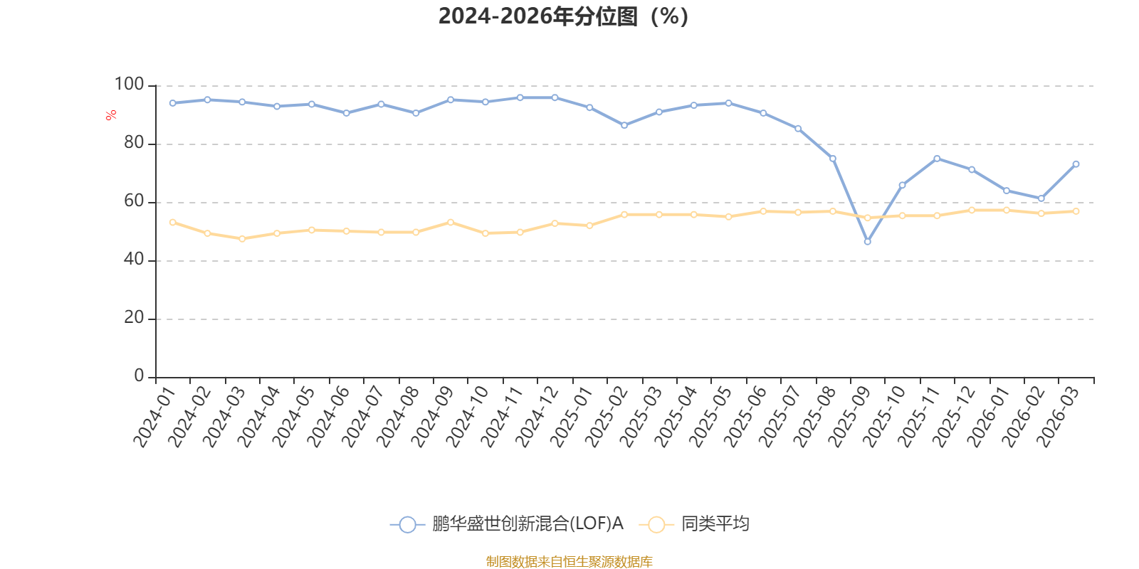 通过所选区间该基金净值增长率分位图,可以观察该基金与同类基金业绩比较情况。图为坐标原点到区间内某时点的净值增长率在同类基金中的分位数。